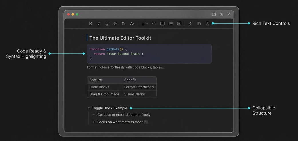 Access your notes via all your devices. A user-friendly UI supports light and dark themes out of the box.